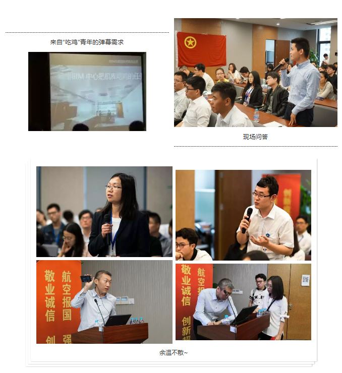 講座采用了多種信息化手段,實時的彈幕提問與持續(xù)不斷的現(xiàn)場問答將整個講座推向了高潮,“機庫吃雞”“BIM與區(qū)塊鏈”等互聯(lián)網(wǎng)熱點也成為青年員工關(guān)注的焦點,即便散場以后,大家的熱情依舊不減,圍繞在云朋身邊的“問題”青年不斷。
